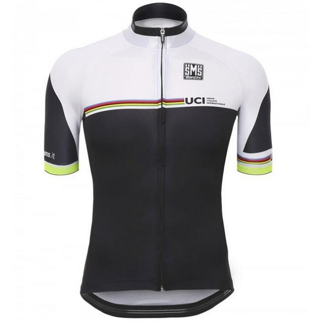 2016 Santini UCI arc en ciel ligne bianco Maglia Ciclismo Manica Corta 25813-TV