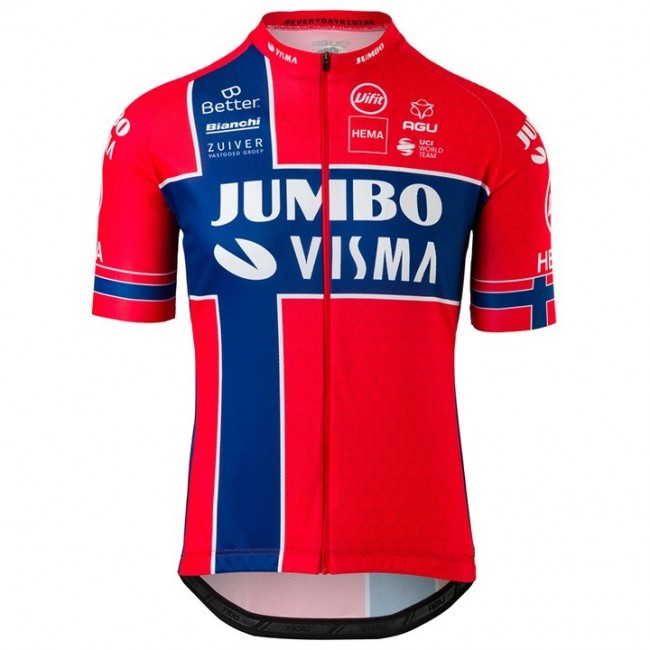 Completo Ciclismo 2020 JUMBO-VISMA Norway champion Squadre Maglia Ciclismo Manica Corta
